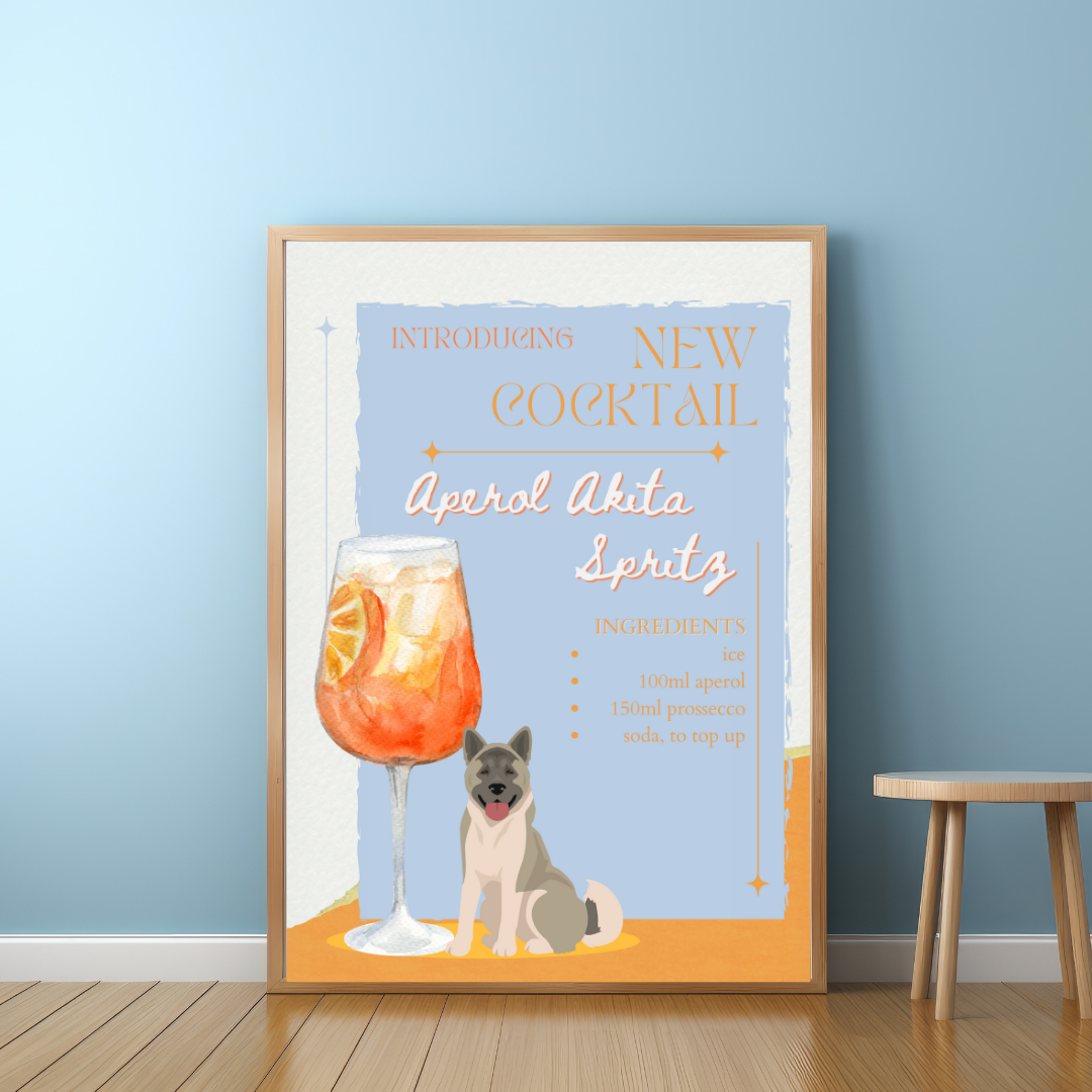 Introducing the "Aperol Akita Spritz" dog cocktail collection, a must-have for Akita lovers or as a great gift option.