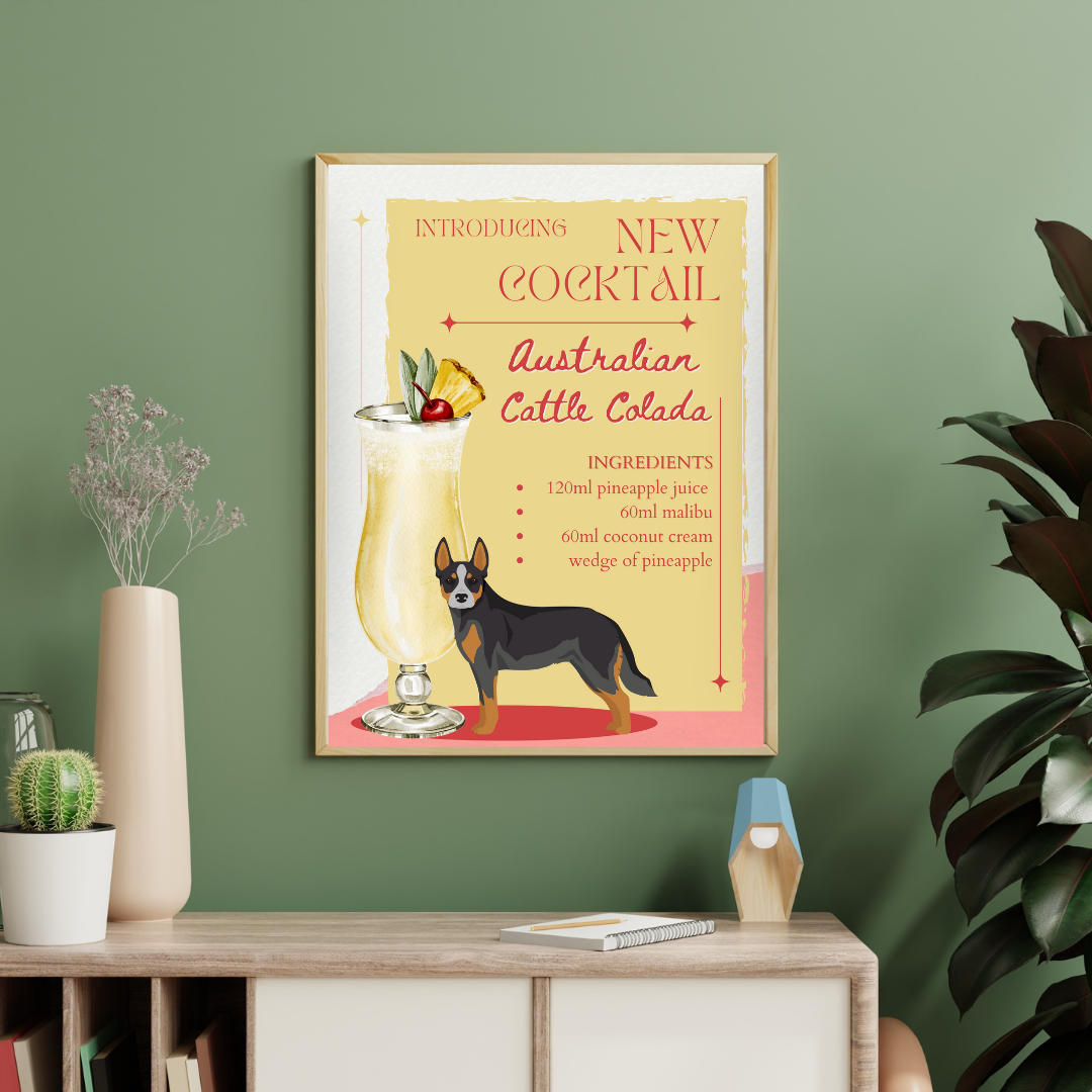 Introducing the "Australian Cattle Colada" dog cocktail collection, a must-have for Australian Cattle dog lovers.