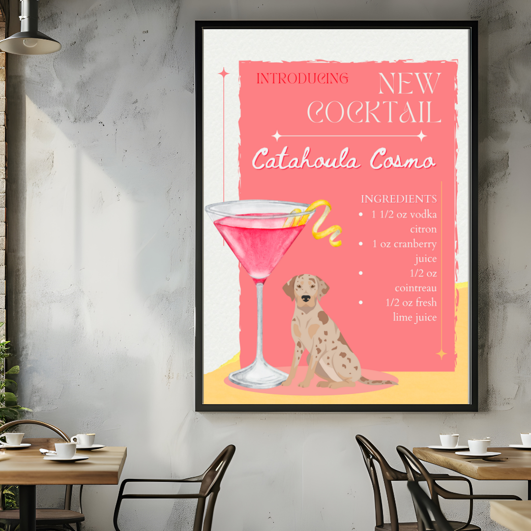 Introducing the "Catahoula Cosmo" dog cocktail collection, a must-have for Catahoula Leopard lovers or as a great gift option.