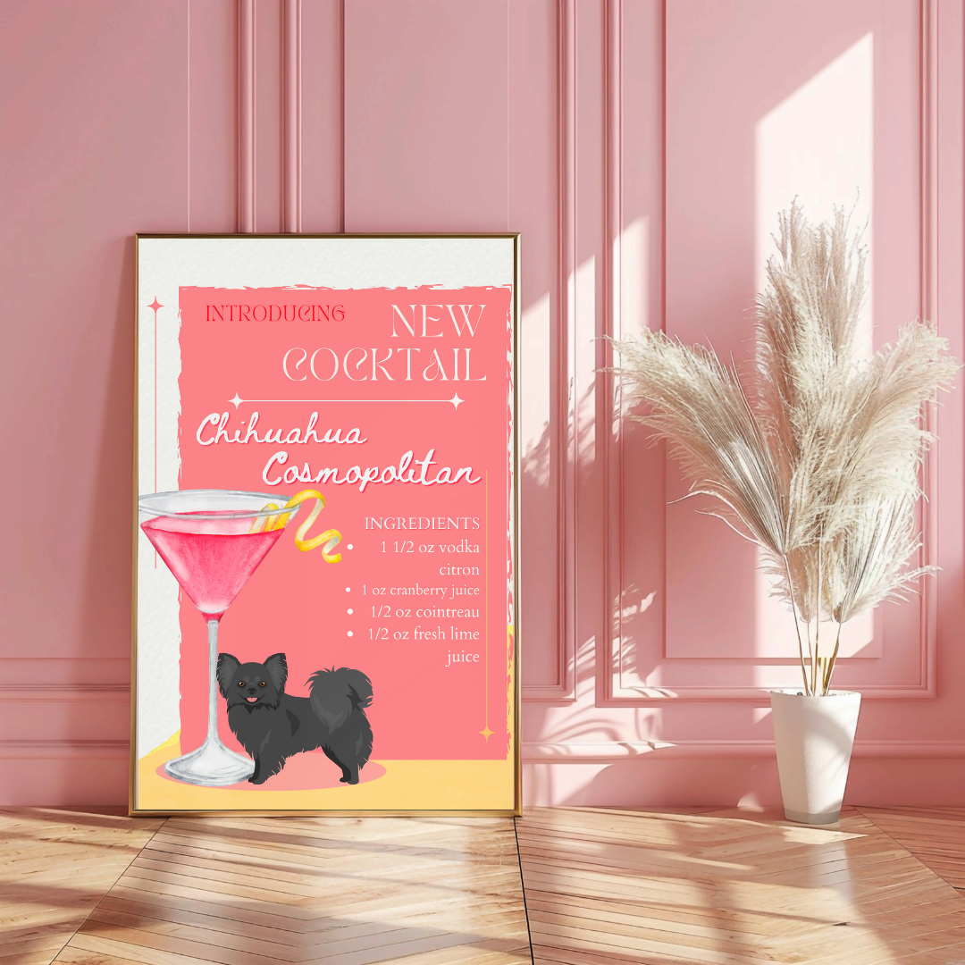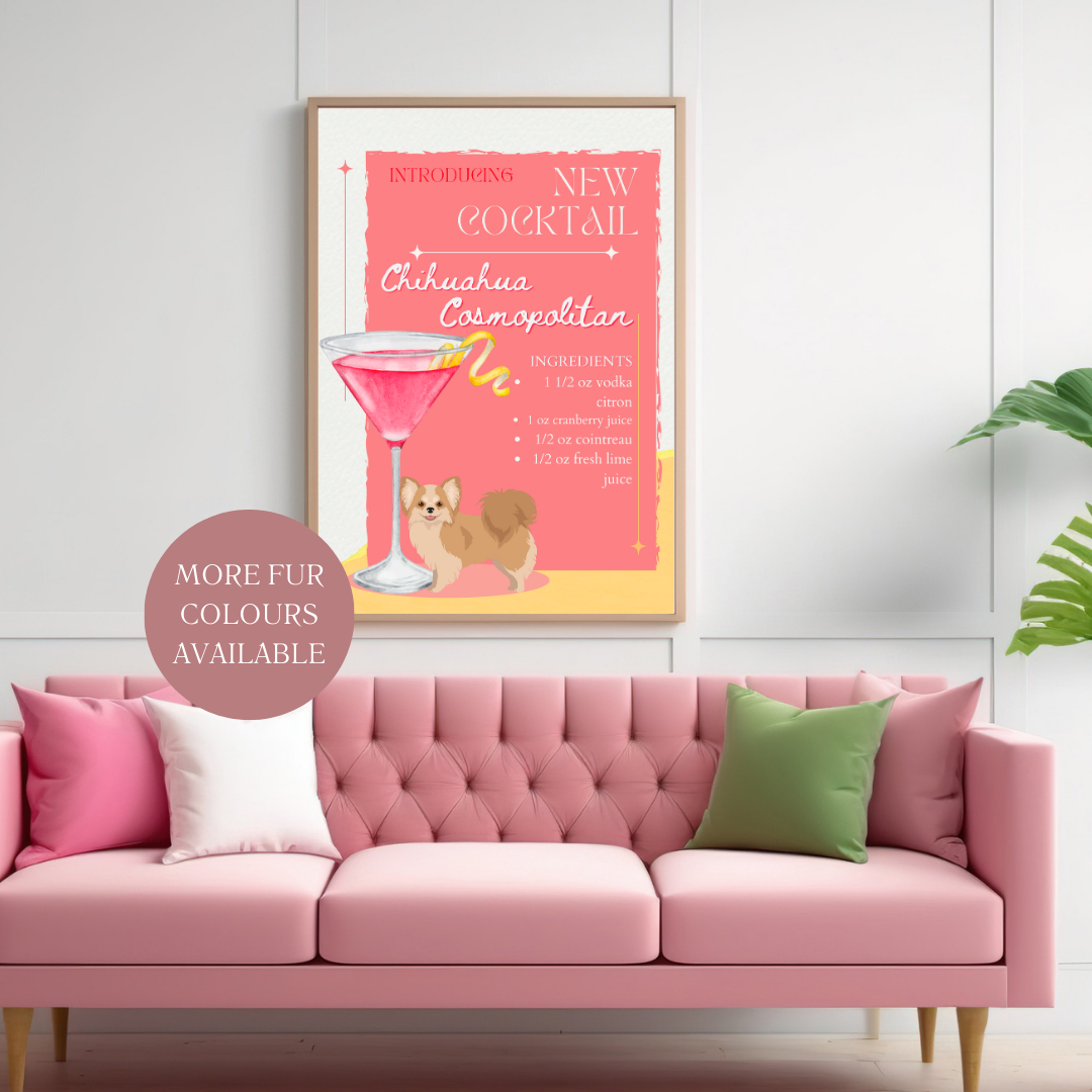 Introducing the "Chihuahua Cosmopolitan" dog cocktail collection, a must-have for long-haired chihuahua lovers or as a great gift option. This product is available in three different fur colours, allowing for personalization and customization to fit the preferences of the customer.