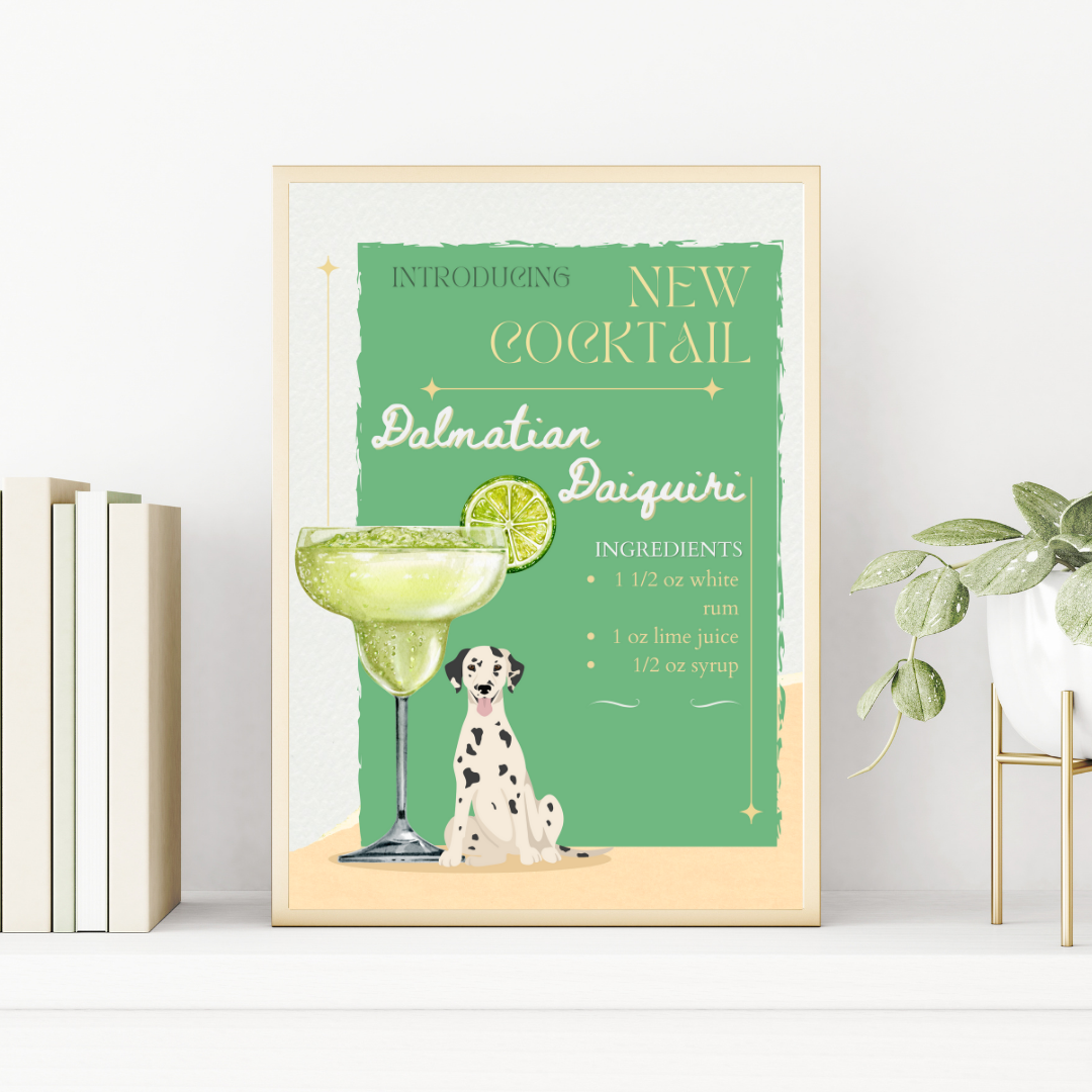 Introducing the "Dalmatian Daiquiri" from the dog cocktail collection, a must-have for dalmatian lovers or as a great gift option.