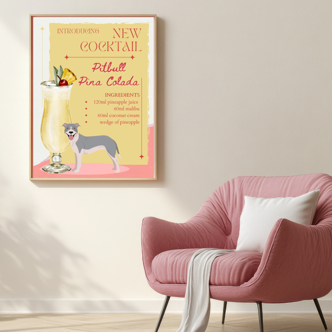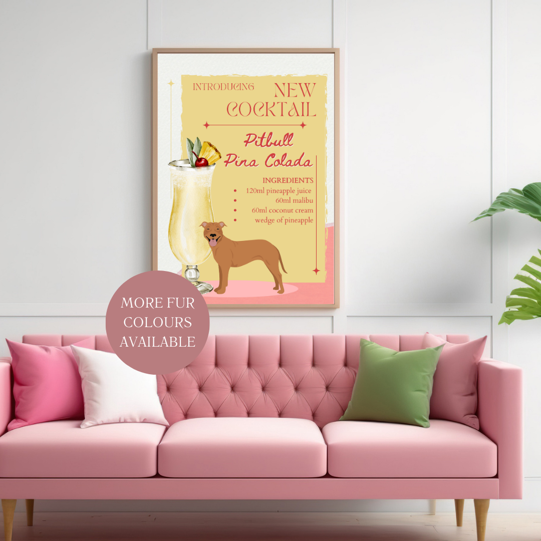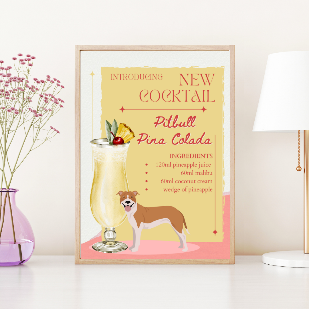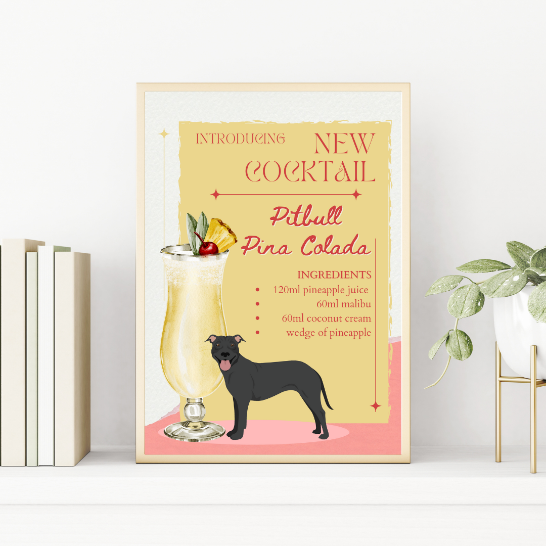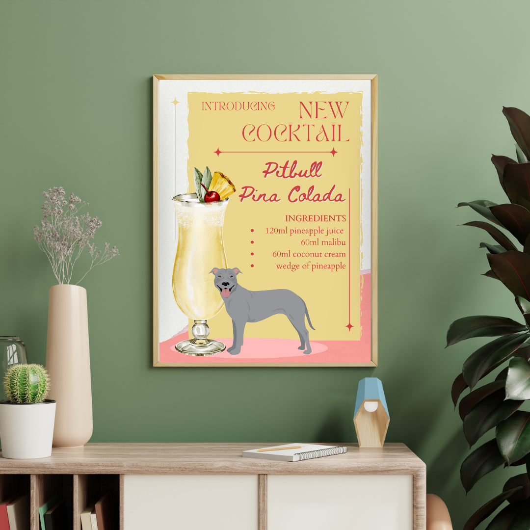 Introducing the "Pitbull Pina Colada" dog cocktail collection, a must-have for Pitbull dog lovers.