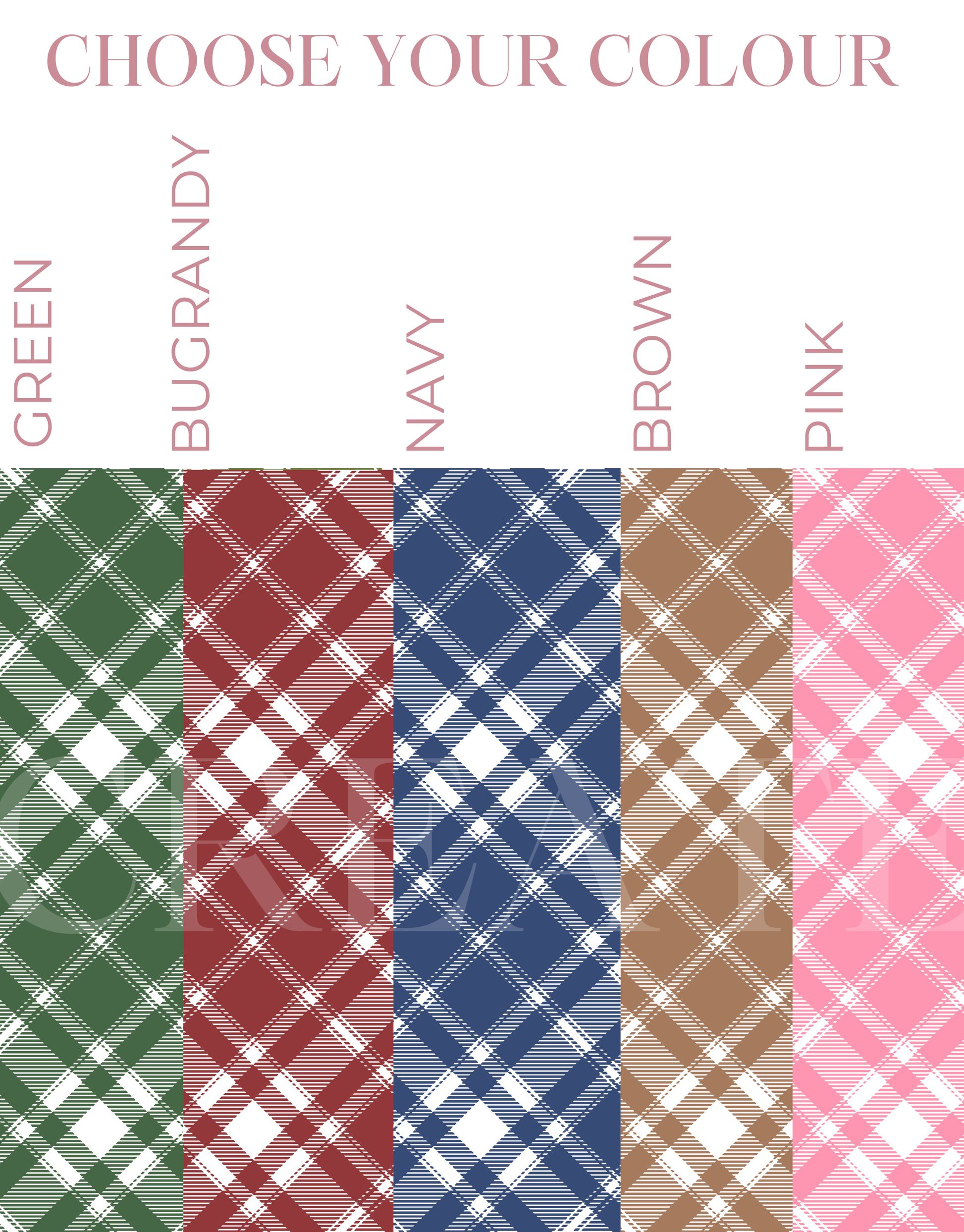 - Pick your favorite plaid pattern: navy, green, pink, burgandy, or brown.