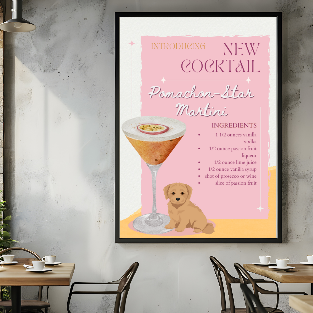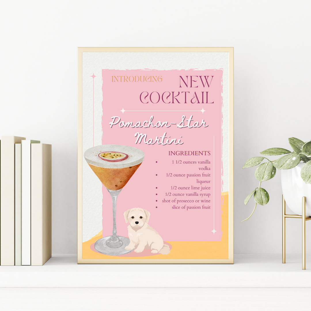 Introducing the "Pomachon-Star Martini" from the dog cocktail collection, a must-have for Pomachon (Pomeranian x Bichon Frise) lovers or as a great gift option.