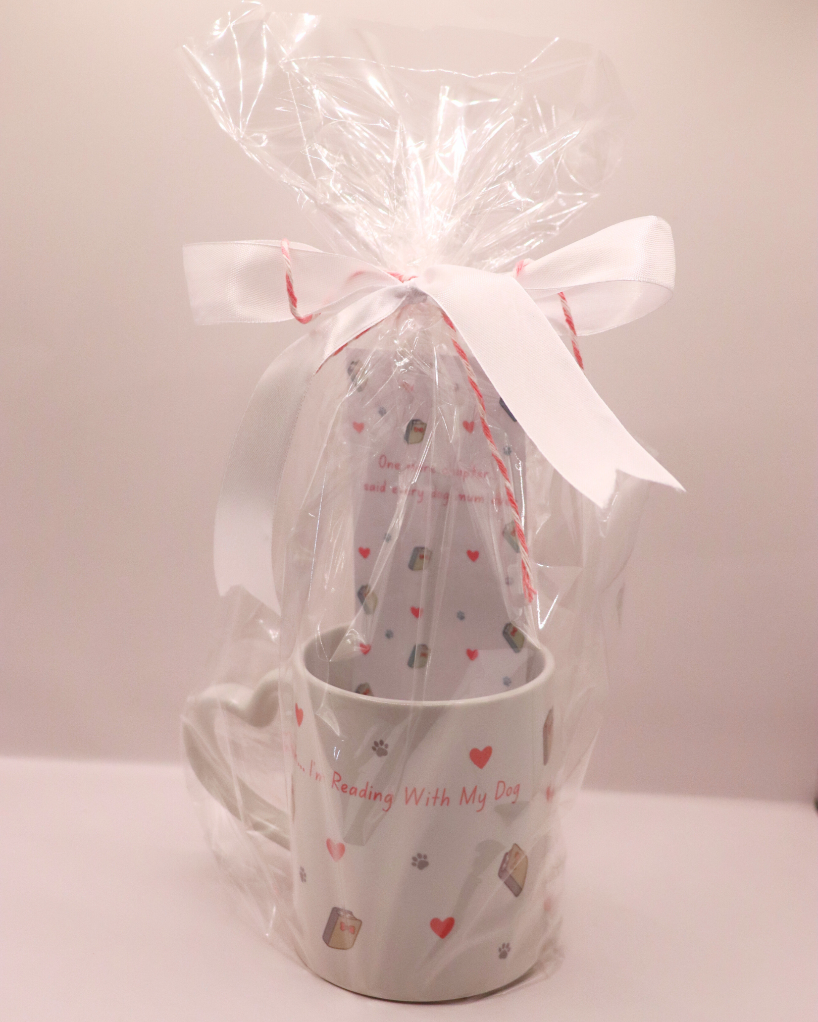 The perfect cosy gift for any dog-loving bookworm. This set includes a sweet heart-handled mug decorated with hearts, paw prints and books, paired with a matching bookmark. Both come beautifully gift wrapped in cellophane with a ribbon bow—ready to give for birthdays, Christmas or Secret Santa.