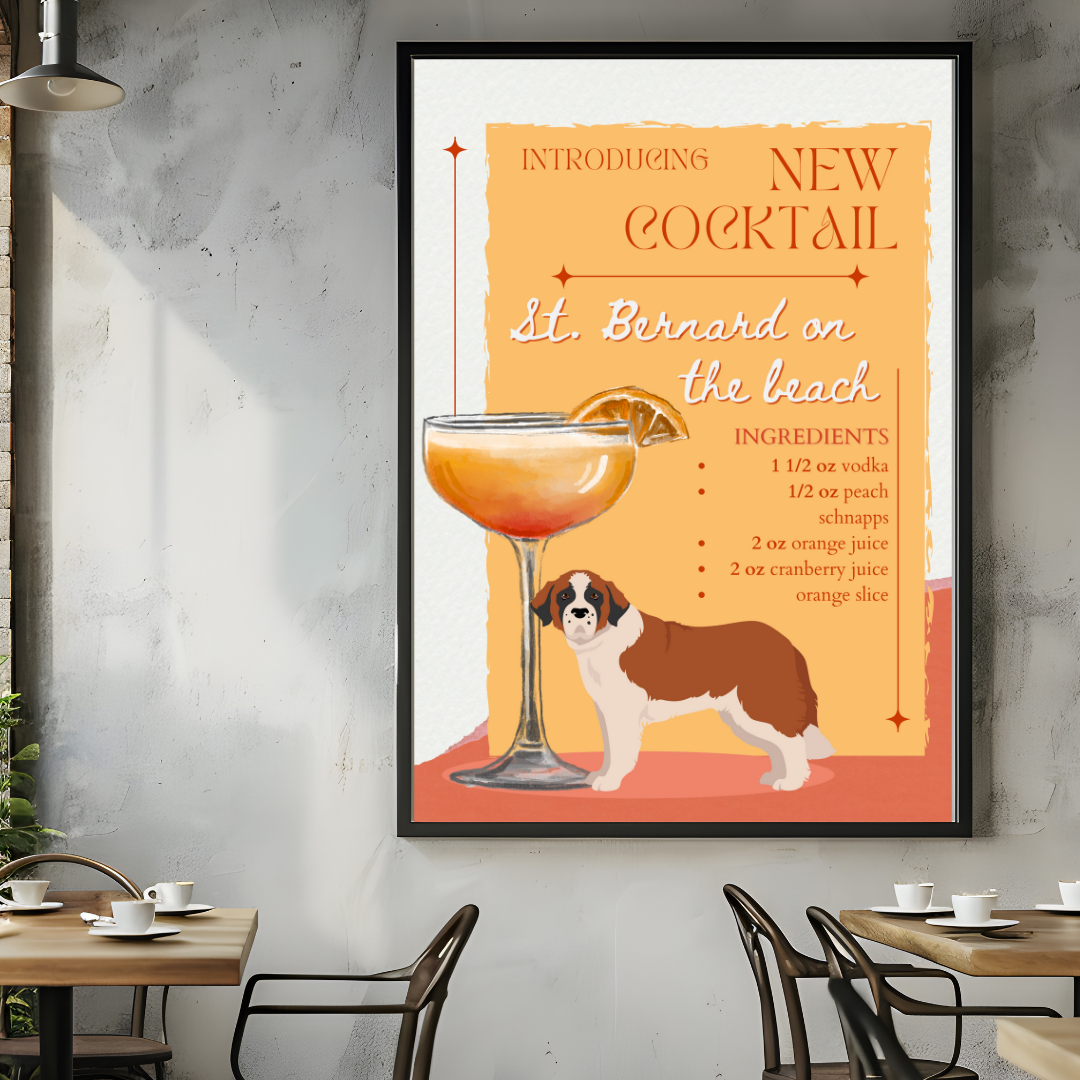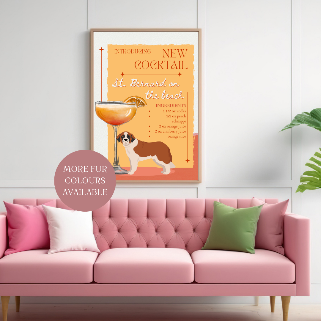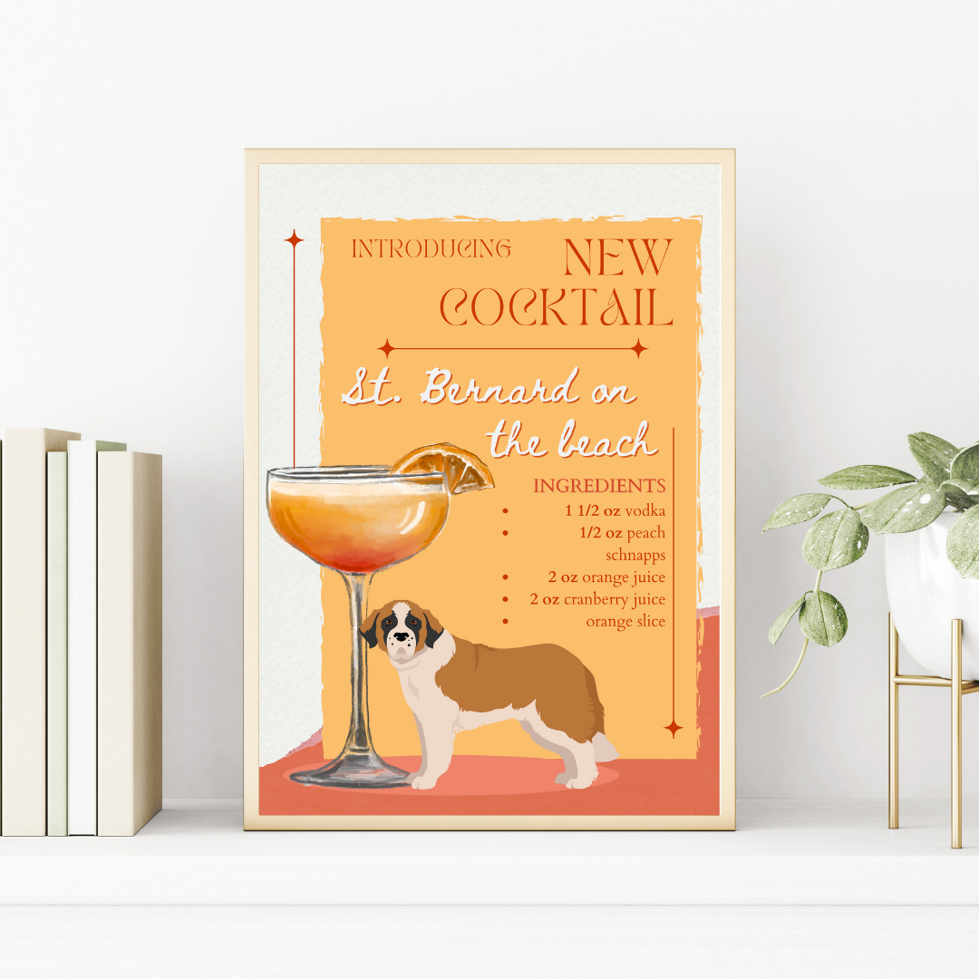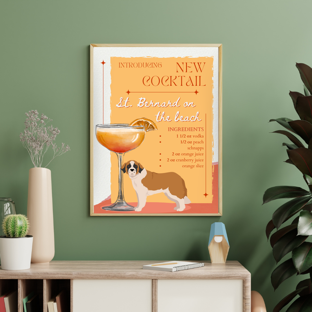 Introducing the "St Bernard On The Beach" from the dog cocktail collection, a must-have for St Bernard dog owners or as a great gift option.